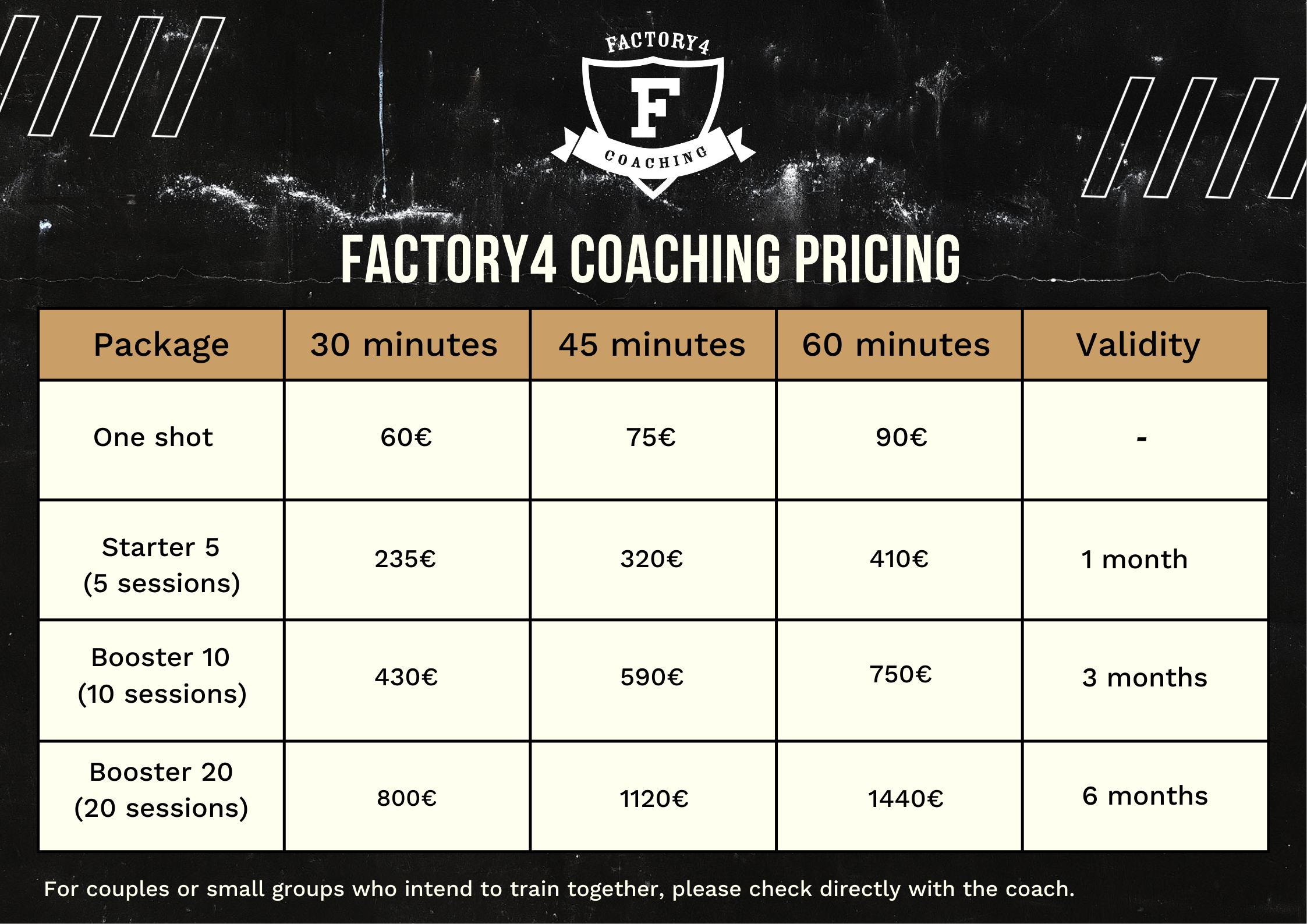 Factory 4 excelle dans différents domaines de coaching, allant au-delà du simple entraînement physique. Nous sommes spécialisés dans la perte de poids, l’entraînement fonctionnel visant à renforcer muscles, articulations et tendons, la préparation physique optimale pour des compétitions et événements sportifs, ainsi que l’entraînement cardiaque. De plus, nos coachs sont compétents en correction posturale, rééducation et renforcement musculaire.